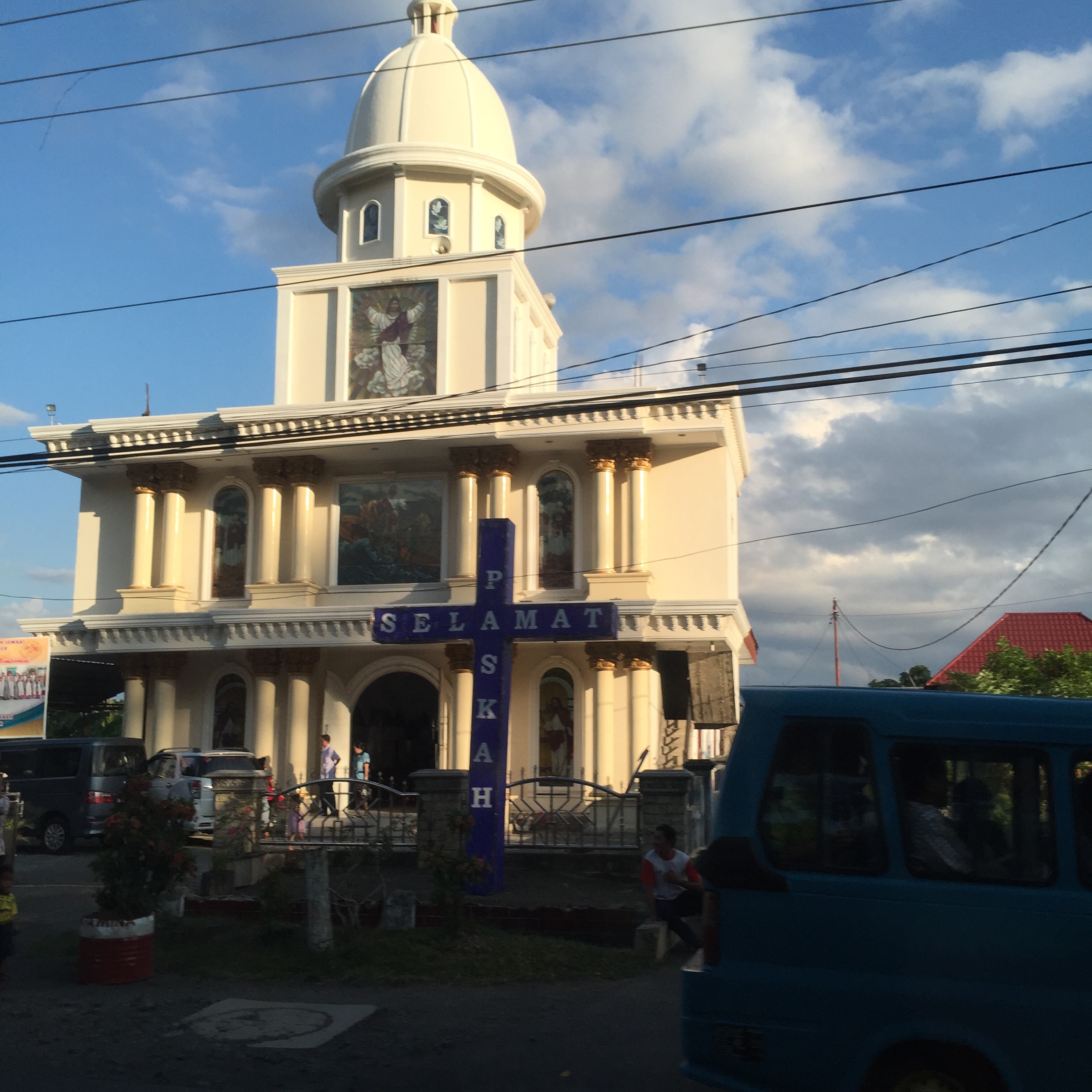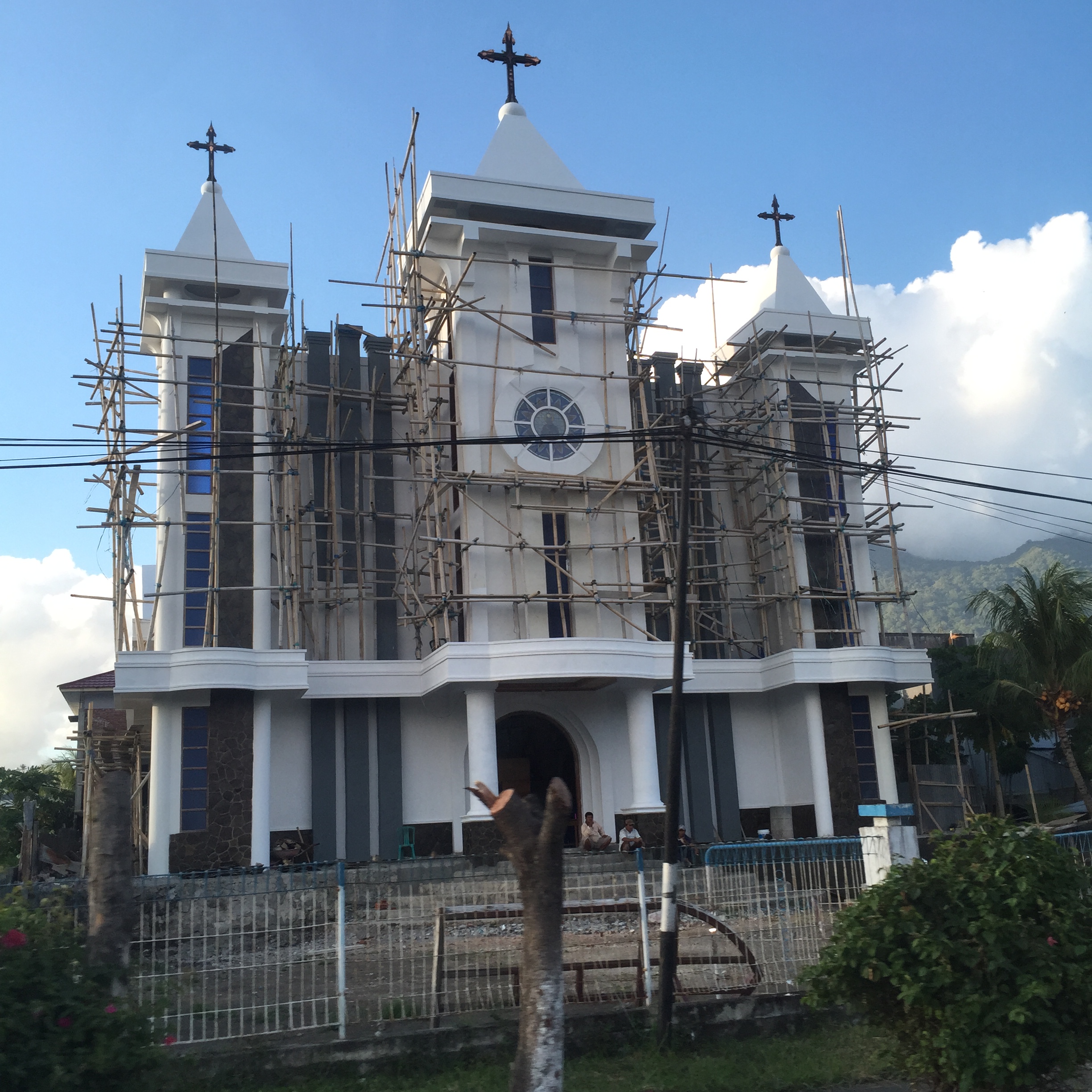 It is also in Indonesia’s most densely populated Christian area, bristling with Churches, which the government is doing its best to dilute with Javanese and other Moslem immigrants. It’s not just a European problem! On our 1.5 hour drive from Manado, there’s a church every 50 yards or so; I snapped a few from the car as we trundled past…