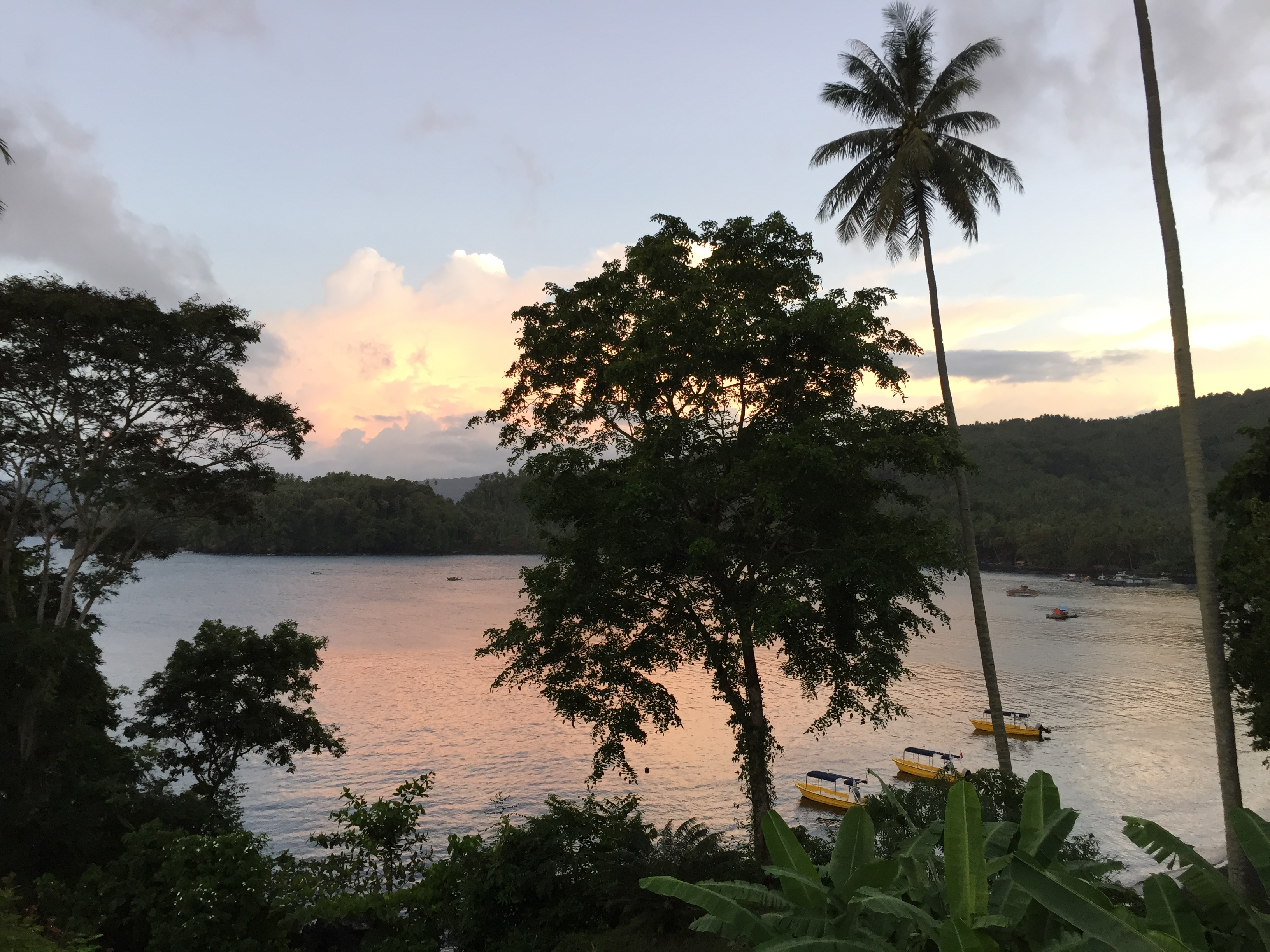 Lembeh is in NE Sulawesi, nestled underneath a perfect volcanic cone and surrounded by densely-wooded tropical forest, palm trees and luscious flowering plants – baby pink hibiscus, ginger, multi-coloured bougainvillea and flame trees. The Lembeh strait is rich with fertile volcanic rainwater run-off (it is in the rain shadow) and consequently receives nourishing nutrients which makes the local species bigger and better than anywhere else. So we are told.