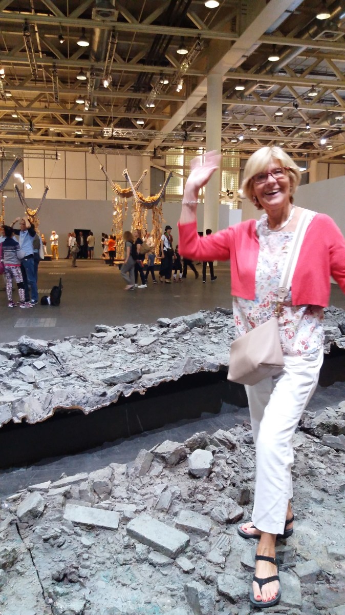The work Due stems from the work that Massimo Bartolini presented in the Italian Pavilion at the 55th Venice Biennale in 2013. The work consists of a low ramp in an open space, made up of a bronze cast of rubble: an enigmatic sculpture and trompe l’oeil that invites the viewer into a new perspective of space. ‘In these times, I feel like being above a cusp, between two seasons: the earlier one of inconsiderate monumental optimism and the latter one, of a sober restraint that leads to a reflexive reduction. Constructing a monument made of rubble is like celebrating an end, which in turn is the beginning of a possible bridge between these two seasons, and reveals the paradox of their coexistence.’ – Massimo Bartolini, 2013 … hmm?