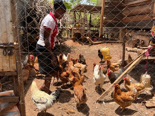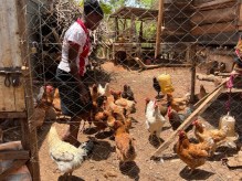 Carol with her hens